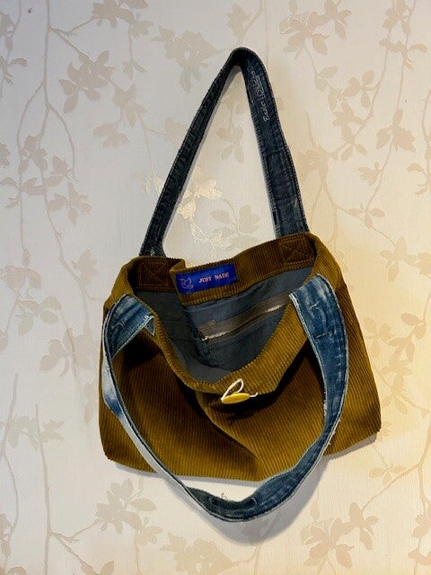 Je kan de tas afsluiten met een knoop en er zitten twee binnenzakjes in, waarvan 1 met een rits.