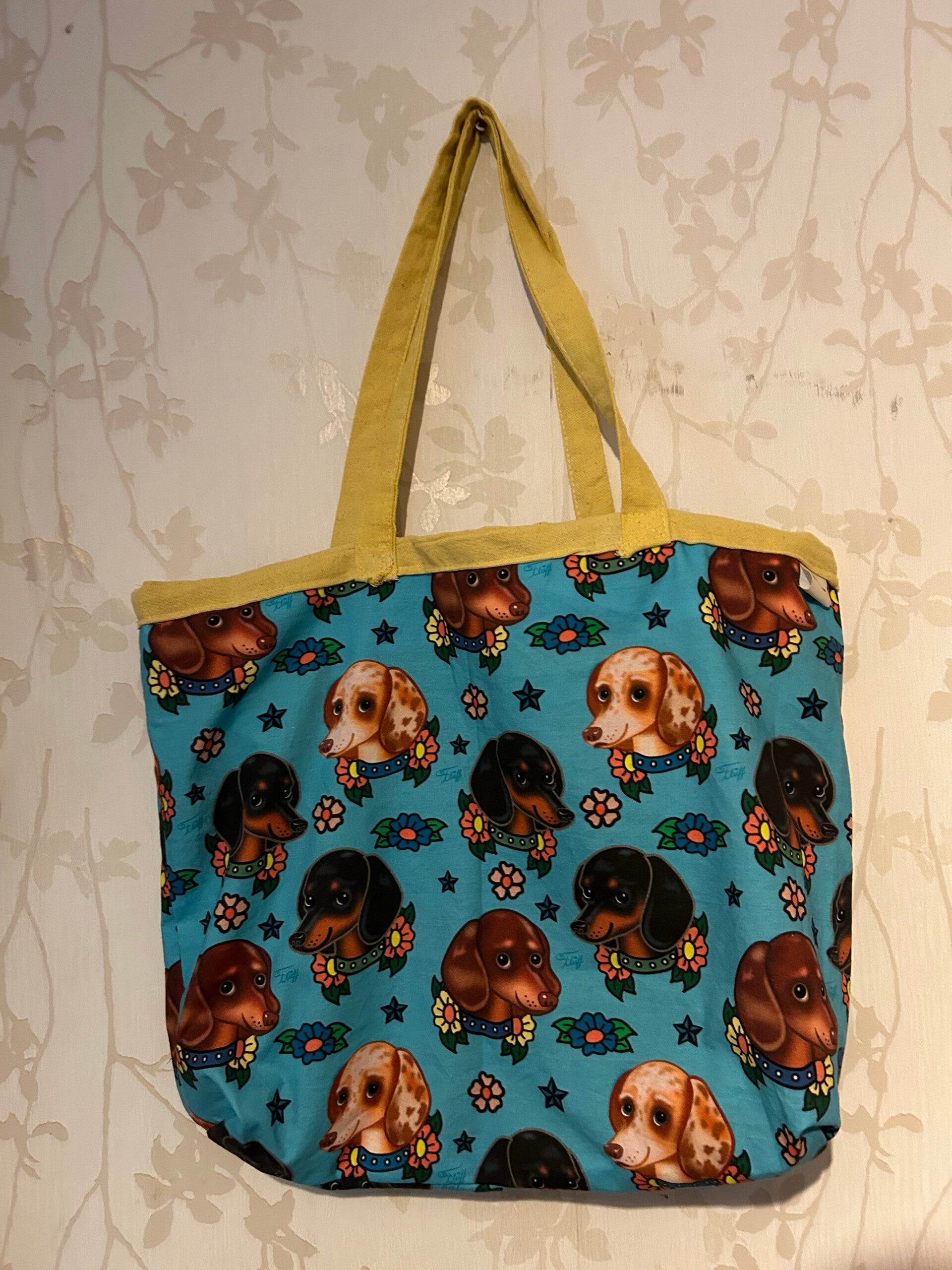 Een hele fijne tas die tot zeker 6 kilo gewicht kan dragen, bestaat uit twee lagen katoen.