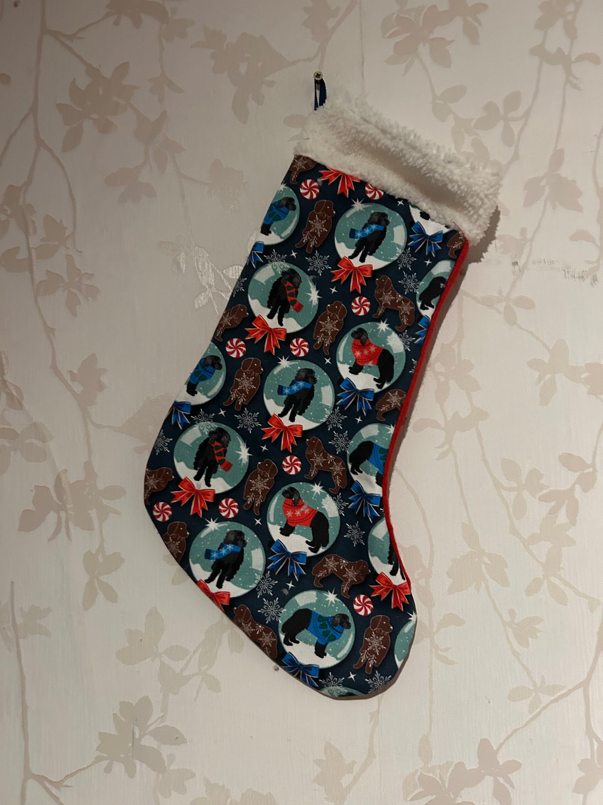 De voorkant is het ontwerp op een stevige denim dat je ziet, de achterkant rood met een wit randje.