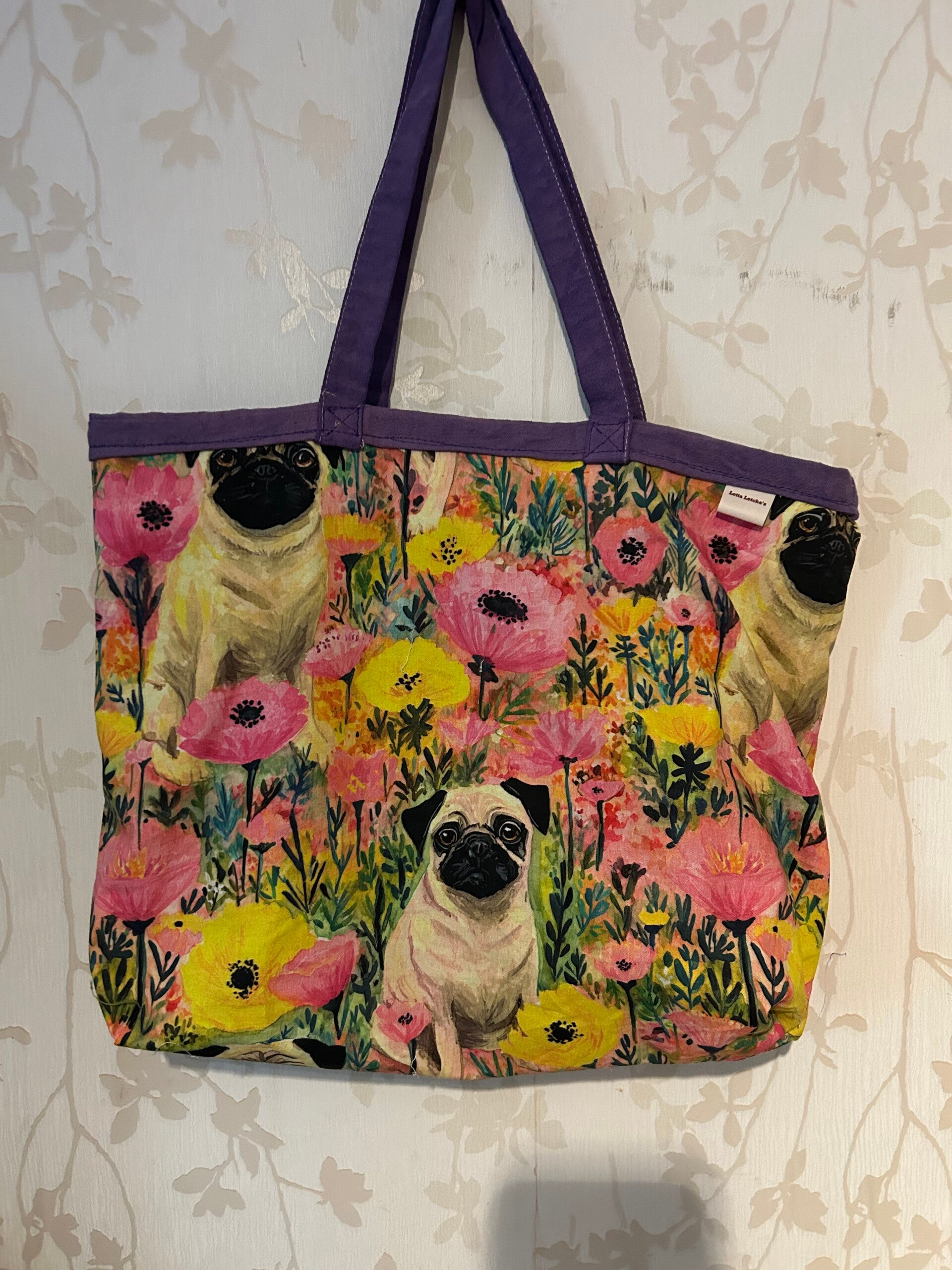 Boodschappentas : Mops met bloemen